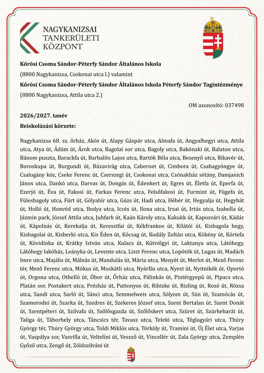Kőrösi Csoma Sándor - Péterfy Sándor Általános Iskola